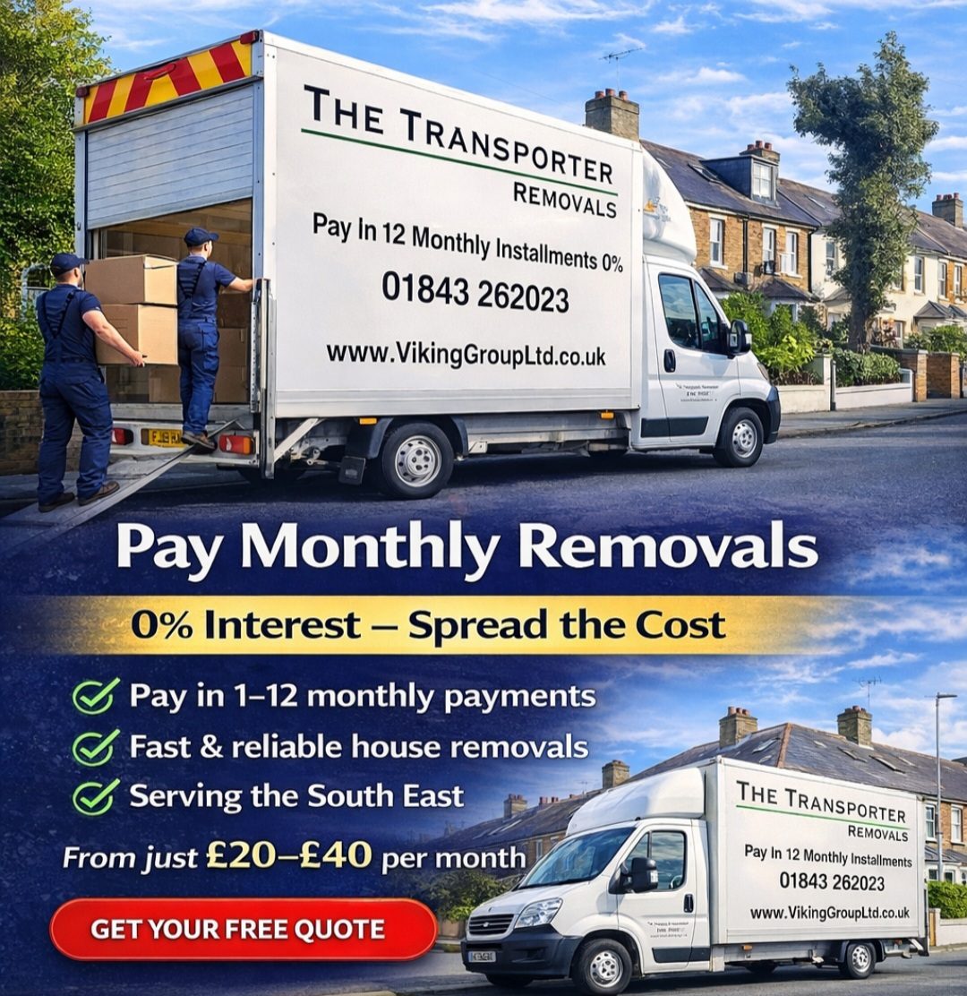 Spread The Cost of moving to or from Kent. Pay in 12 Affordable Monthly payments 0% when using our moving services.